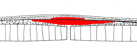 Infiltrated Hot-Seal adhesives form a thick layer under the flakes provide a support and prevent the lamina from moving. But they are not reversible and resist subsequent securing measures.
